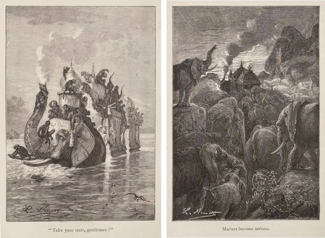 儒勒·凡尔纳《蒸汽房屋》(The Steam House)1881年英译本中的插图。© archive.org
