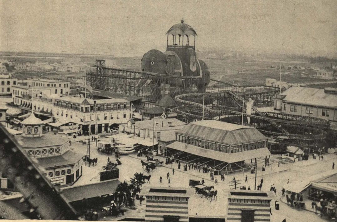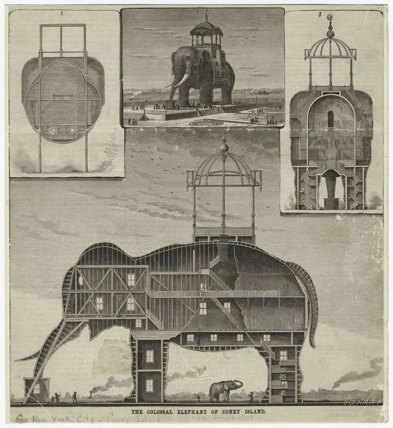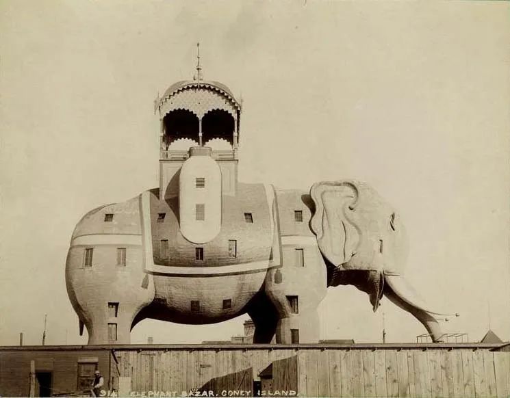 康尼岛上“巨象”建筑侧景,拍摄者未知。© wikimedia