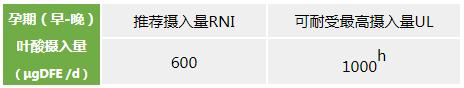 h:指合成叶酸摄入量上限,不包括天然食物来源的叶酸量。