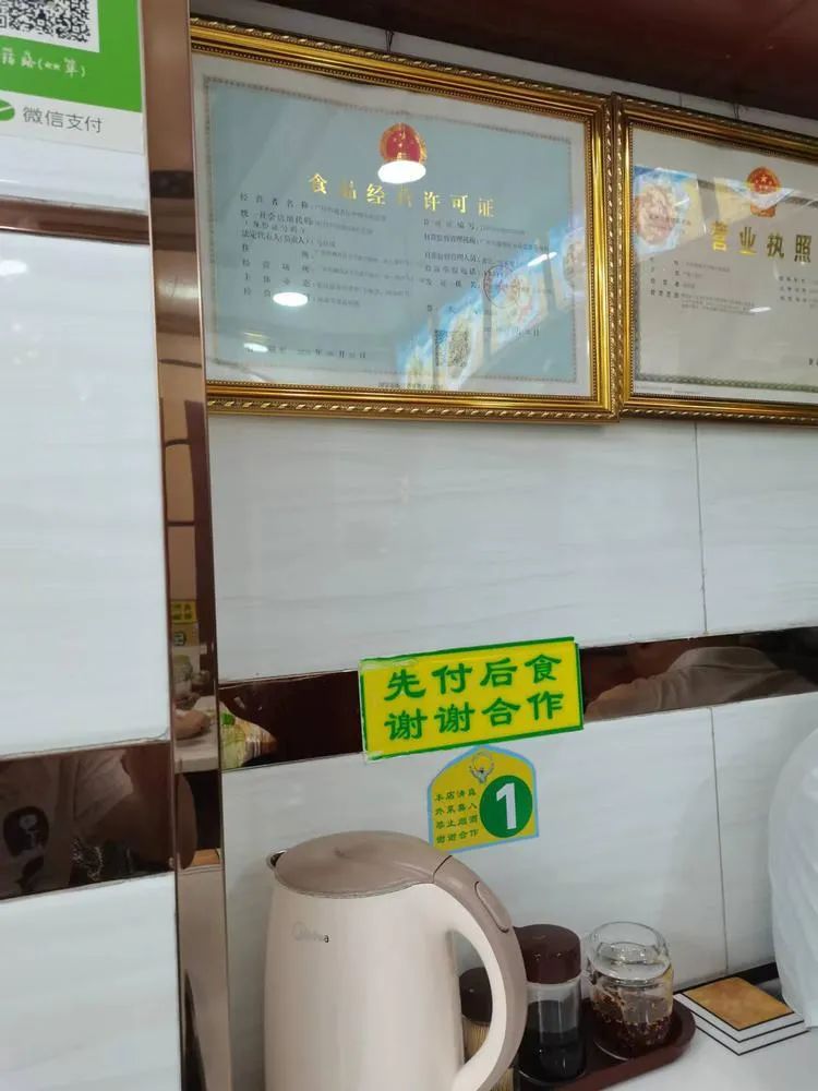 自位于天河区车陂路的一家面馆,记者留意到菜单上有“爽口秋耳”“裙带菜”“麻辣瓜条”等凉菜出售,但其食品经营许可证中经营项目并没有注明“冷食类食品制售”字样,而是“散装食品销售(含冷藏冷冻食品、不含散装熟食、不含散装酒)”等。