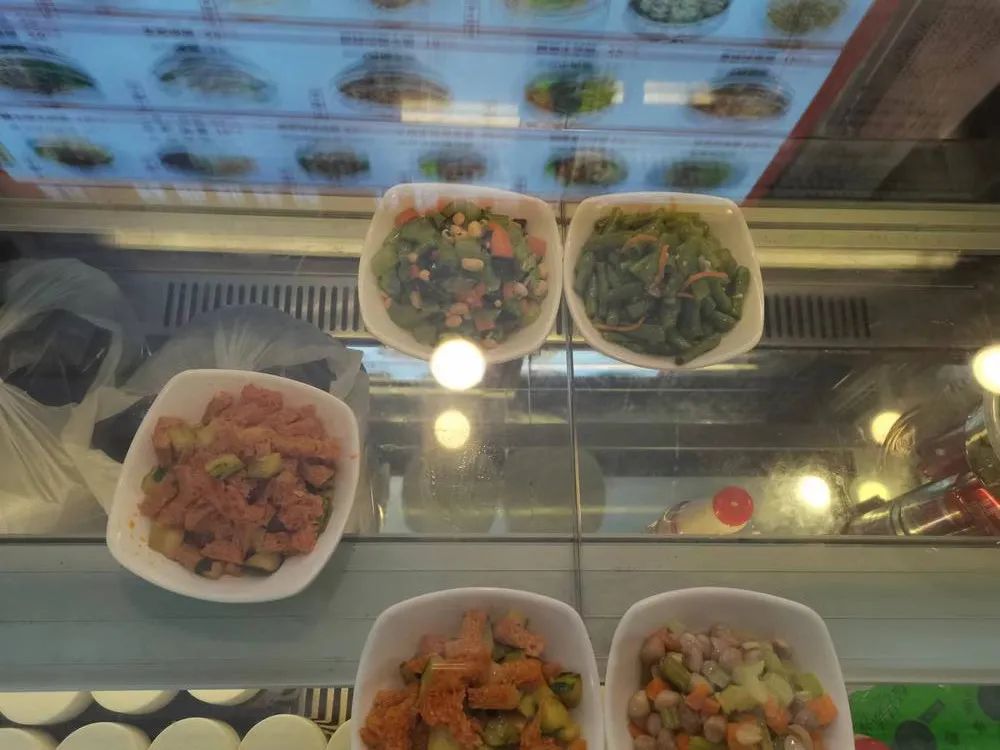 值得注意的是,在店门口点餐处的大菜单上,柜台中售卖的凉菜大部分都未被列举出来,服务员对此的解释是“菜单太小了,写不下,扫码点菜就能看到”。记者进店扫码后发现,该店共有“凉拌猪耳丝”“拌青瓜”等13款凉菜在售。