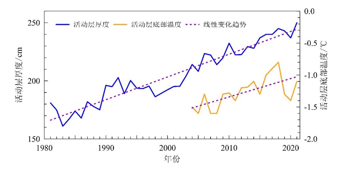和活动层底部温度变化