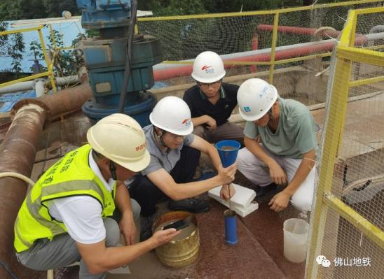 管理人员现场抽测盾构泥浆的粘度、含砂率