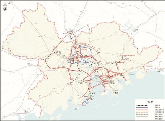 粤港澳大湾区城际铁路规划示意图