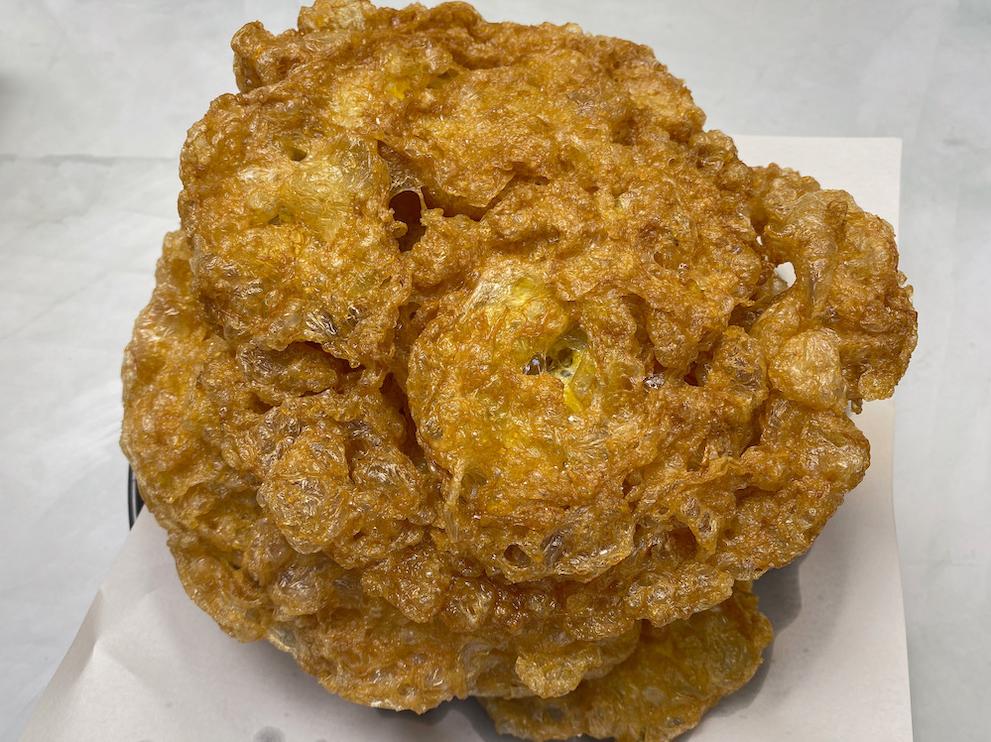 ② 鸡蛋液两面炸定型捞出,凉一会更脆。