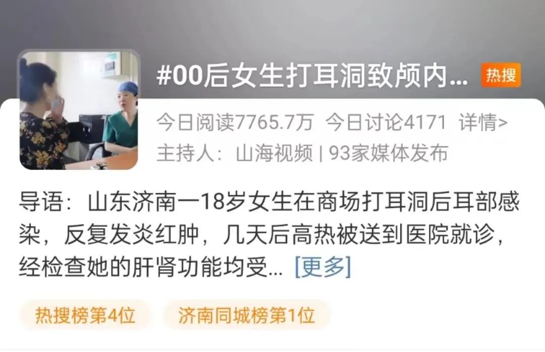 看到标题是不是吓一跳?前段时间,一条因为打耳洞而导致颅内感染的报道冲上了热搜。
