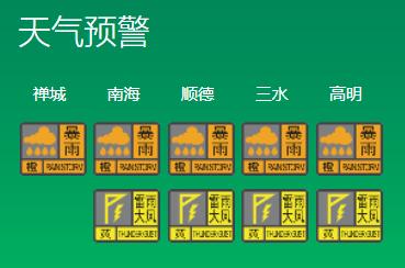 市自然资源局和市气象局17时10分联合发布消息:预计未来24小时(8月4日17时-8月5日17时),顺德区大良街道、龙江镇、容桂街道、勒流街道、杏坛镇,三水区云东海街道、西南街道,高明区明城镇等地部分区域地质灾害预警等级3级。