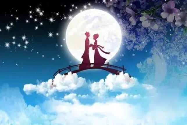 过这个节日就不得不知道牛郎织女的故事:传说古代天帝的孙女织女擅长织布,每天给天空织彩霞。她讨厌这枯燥的生活,就偷偷下到凡间,私自嫁给河西的牛郎,过上男耕女织的生活。此事惹怒了天帝,把织女捉回天宫,责令他们分离,只允许他们每年的农历七月七日在鹊桥上相会一次。他们坚贞的爱情感动了喜鹊,无数喜鹊飞来,用身体搭成一道跨越天河的喜鹊桥,让牛郎织女在天河上相会。早在远古时代,追求秩序的古人们不仅将天空规划得井井有条,还将星宿与地面区域一一做了对应,而古人为了更好地“分星”,将“牛宿星”与“织女星”合称为“牛郎织女”。后来经过民间的发展,这才有了现在每年七月初七牛郎织女会于天上的鹊桥相会的美丽故事传说。