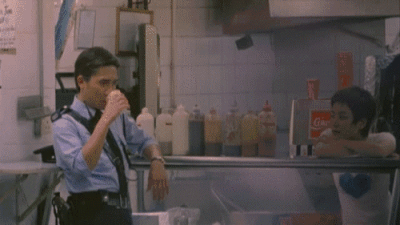 王家卫:很多人会觉得有前面一段才会真实一点。加上香港电影要求有嘢(同“野”,粤语语气词之一,相当于“东西”)发生,事件接事件一直去(进行)。可否事件之间角色坐下来饮杯茶?唔得(不行)。但饮杯茶那段才是真实时刻。