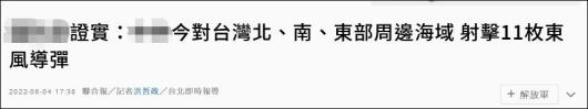 4日12点起,解放军东部战区在台湾周边六个海空区域展开大规模实弹演习。台防务部门本次监测到解放军自4日下午共发射“东风”导弹11枚。