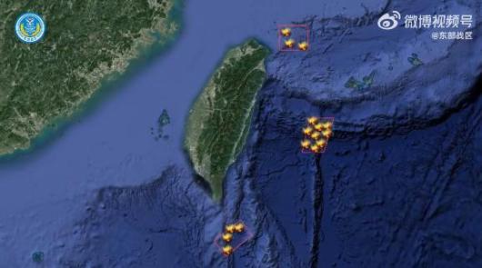在东部战区发布的视频中,导弹落点与台媒说法相符