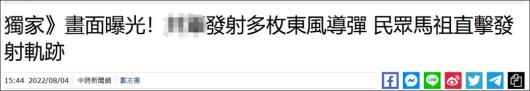另据台媒援引台军消息人士称,“确有导弹越过台湾上空”一事。台军方高层同日叫嚣,如果解放军军演进入台湾所谓的“领海”,台军“完全没有退让空间”。