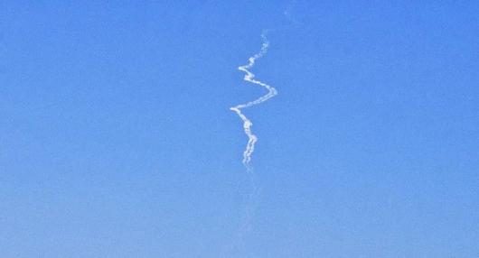 另据台“中时新闻网”消息,马祖民众捕捉到了据称是解放军多枚“东风”导弹发射轨迹画面。画面中,两条白色凝结尾迹从地面升起,一直延升并消失在高空。