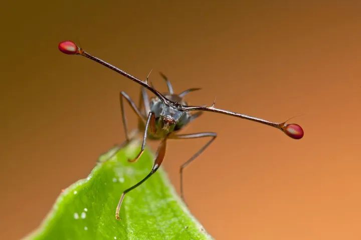 流星锤蛛以蛾子为食,织好一张网守株待兔效率太低,于是它们费尽心思,模拟出一种气味,让蛾子自投罗网。这种气味模拟的是雌性的性外激素,雄蛾子对雌蛾子的性外激素十分敏感,一旦闻到雌性的踪迹,就会奋不顾身地跑过去求偶。流星锤蛛释放的气味让雄蛾子误以为有异性在那边,主动靠近。所以这种蜘蛛几乎吃到的全是雄性蛾子。