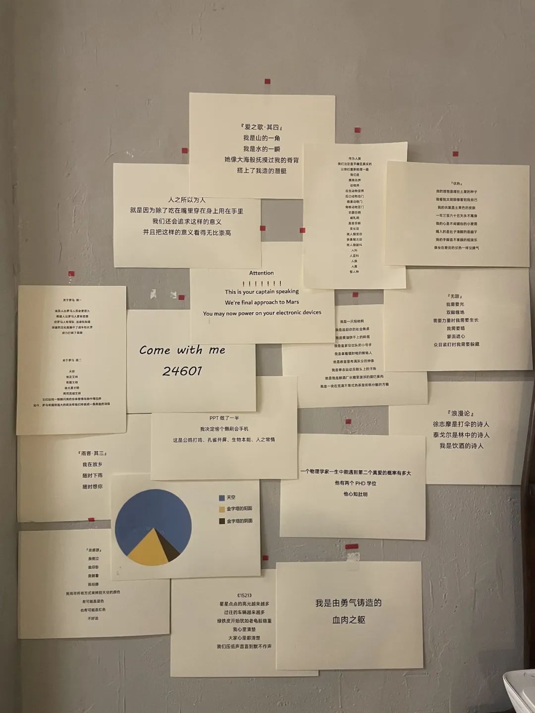 鲍勃看社科类是爱好,他之前在天津自然博物馆做过一段时间的讲解员志愿者,而另一个爱好——写诗,也成了店里的“一盏暖暖的灯”。