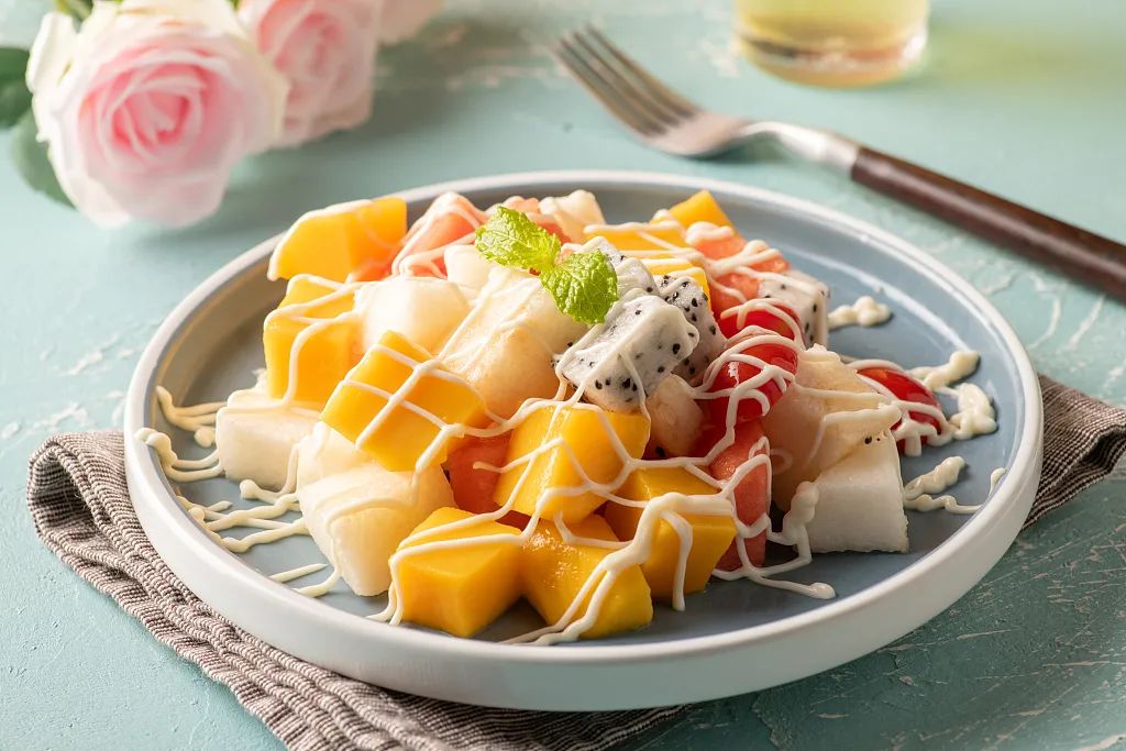 很多人喜欢吃蔬菜沙拉、水果沙拉,在食用各种沙拉时,一般都会加上千岛酱、凯撒酱等不同口味的沙拉酱,觉得这样吃有利于减肥,但是如果吃不对小心越吃越胖!因为沙拉里的沙拉酱616千卡/100克,脂肪更是高达 63%。
