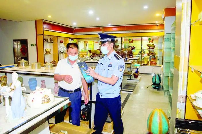 公安民警在高速公路服务区商铺内排查安全隐患