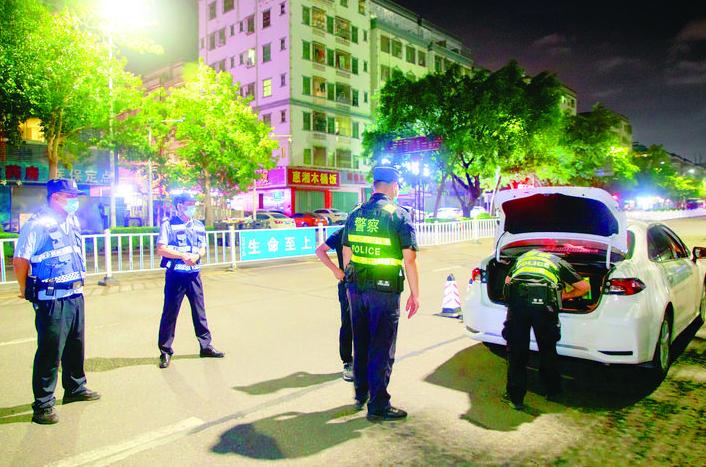 公安民警在重点路段设卡查缉过往车辆