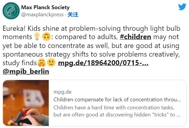 Max研究所的心理学家和神经科学家Nicolas Schuck表示:“我们的研究结果表明,虽然儿童往往比成年人注意力更不集中,更容易分心,但他们在发现全新的解决方案方面出奇地灵活。”