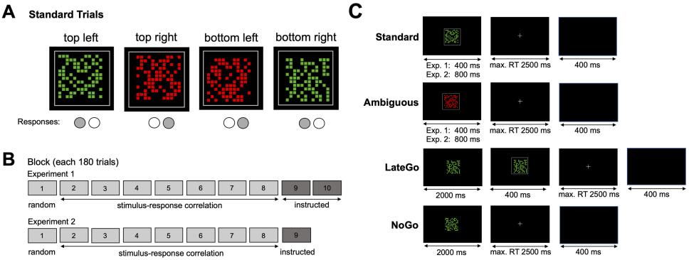 图案的颜色一开始与正确答案无关,但随着任务的进行,颜色开始与正确答案相关。一旦被测试者注意到这一相关性时,他们便能够更有效、容易地解决任务。