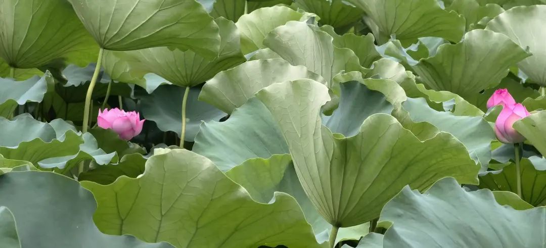 荷花和睡莲都是很需要太阳照射的花,阳光越强烈,它们开得越娇艳。俏丽粉嫩的荷花饱满圆润,枝茎纤细身姿袅娜,随着夏日的微风,整池波浪般的碧绿荷叶翩翩起舞。观者无不动容,情不自禁拿出手机好好拍摄一番。