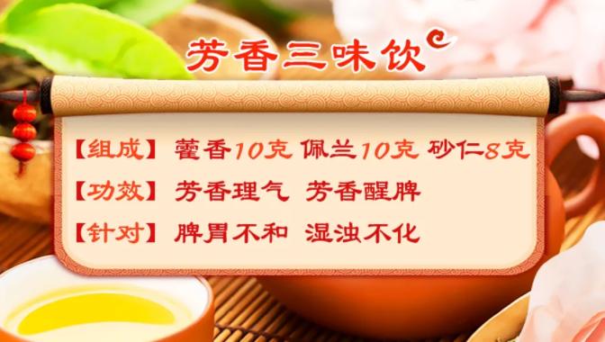 配方:藿香10克、佩兰10克、砂仁8克,一起用沸水冲泡代茶饮。若是加水煎煮,时间最好不超过20分钟。
