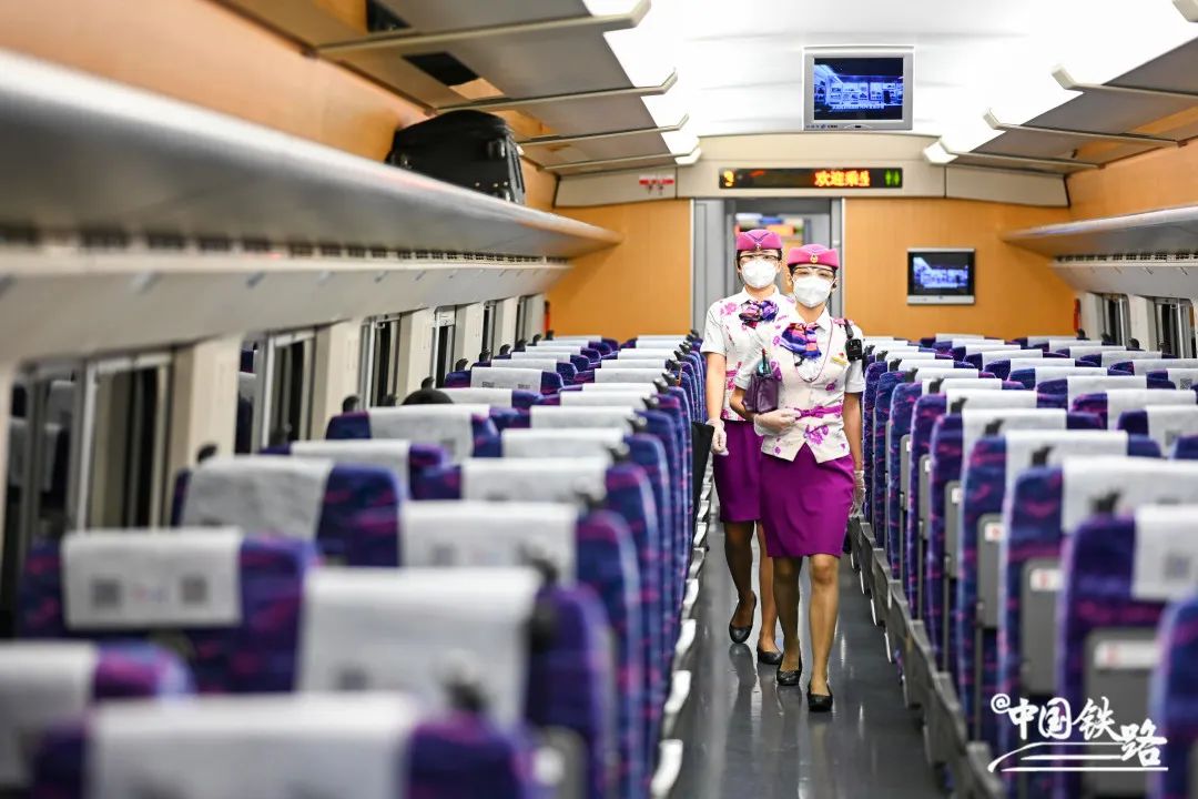 在成渝高铁列车上,一群身着山茶花制服的乘务员正奔走在各个车厢间,送餐到位、整理行李、办理补票……她们是中国铁路成都局集团有限公司的乘务员,这抹亮丽紫色不仅格外引人注目,也给上车旅客传递温暖亲切的第一印象。