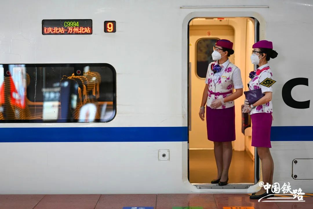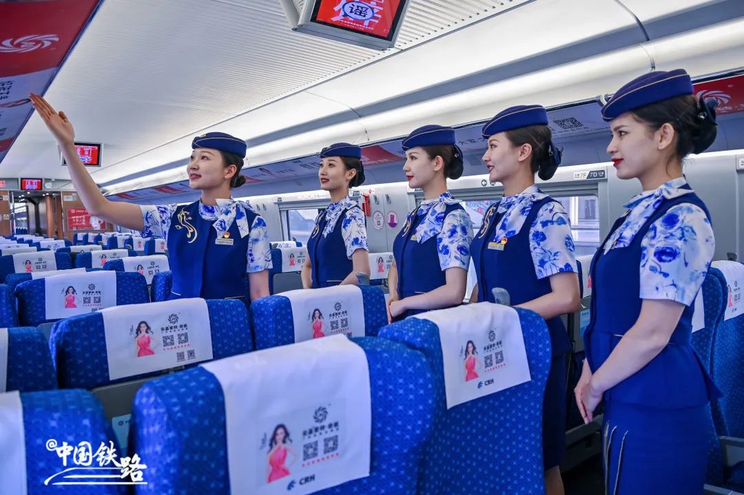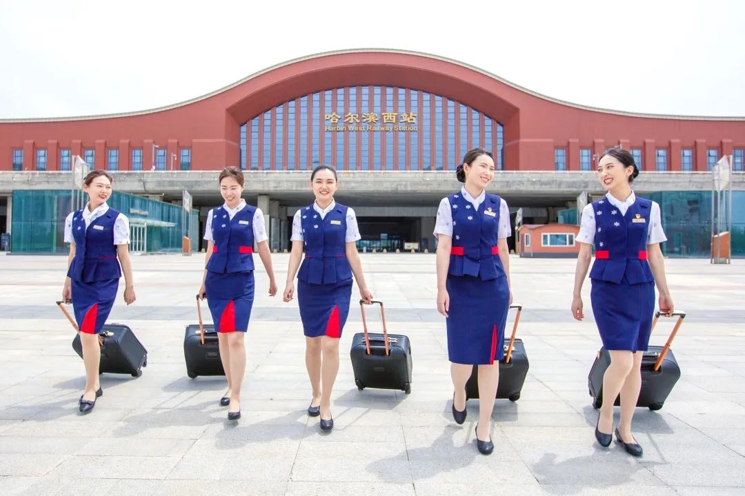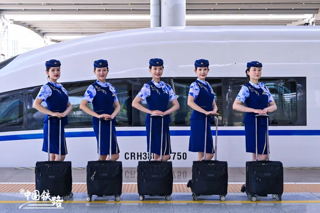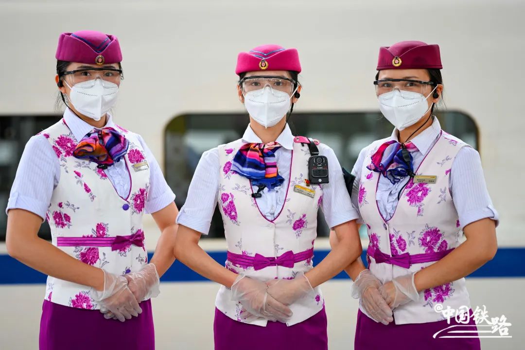 暑运开启后,客流呈现快速回升趋势,乘务员们身着俏丽活泼的铁路制服,为旅客带来更贴心的服务。