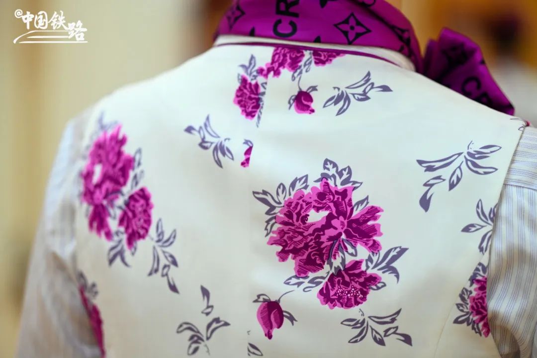 中国铁路兰州局集团有限公司的高铁乘务员制服,在面料选择和色彩搭配上彰显西部地域文化特色。