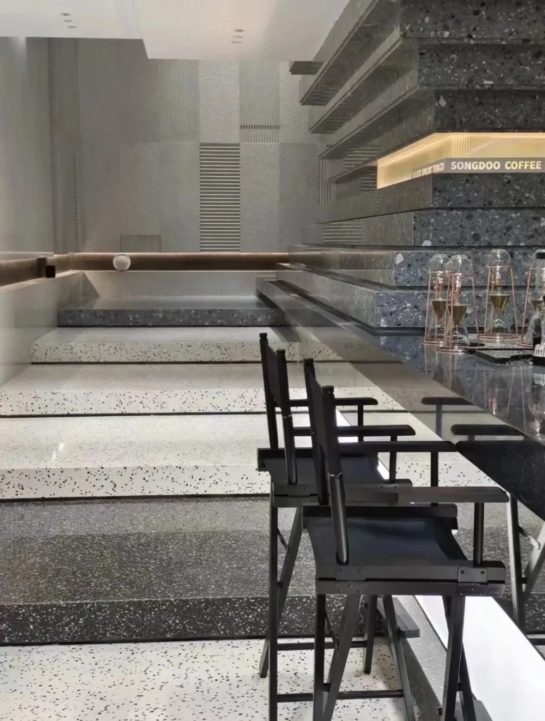 走近磨盒,店内的水磨石映出镜面多重透视的酷炫感,店内每一处的设计都能给人带来美的享受。平时顾客能够坐在这里品尝店内的咖啡,欣赏店内空间带来的视觉感受。