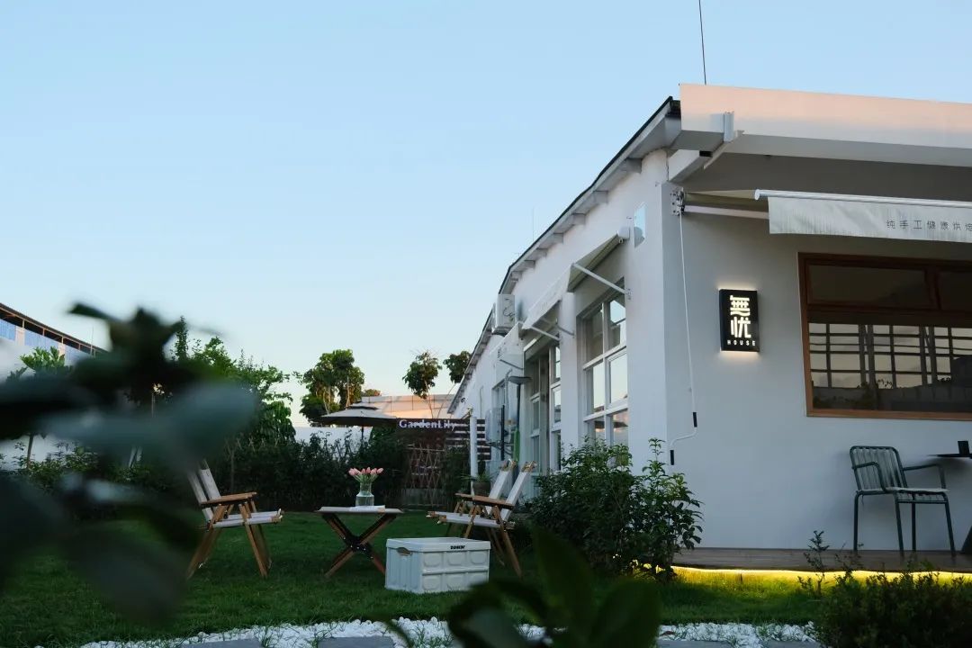 原来这是一家开在花园里的一家烘焙工坊~一进店铺门口,仿佛进入了爱丽丝仙境,花园被月季花和蓝雪花包围着,随着石径往里走,花园内还有装修风格简约的烘焙屋,两者的“邂逅”使得整个花园静谧又浪漫。