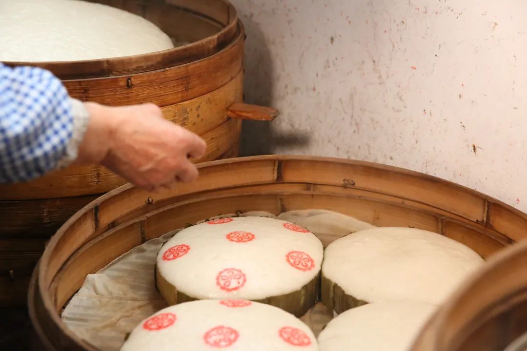 每年的腊月二十前后,家家户户就开始浸糯米,准备炊糖糕。过年吃糖糕寓意着全家团团圆圆,生活幸福和美。刚从蒸笼里出炉的糖糕色如古铜、香糯甜口、芳香四溢,别有一番滋味。