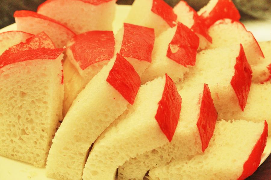 遂昌发糕,有着年年发、步步高的美好祝愿。以酒糟发酵,甜而不腻、糯而不粘,堪称糕中一绝。更有趣的是,遂昌人喜欢在洁白如玉的发糕上抹一层洋红(食用色素),寓意红红火火、大吉大利。