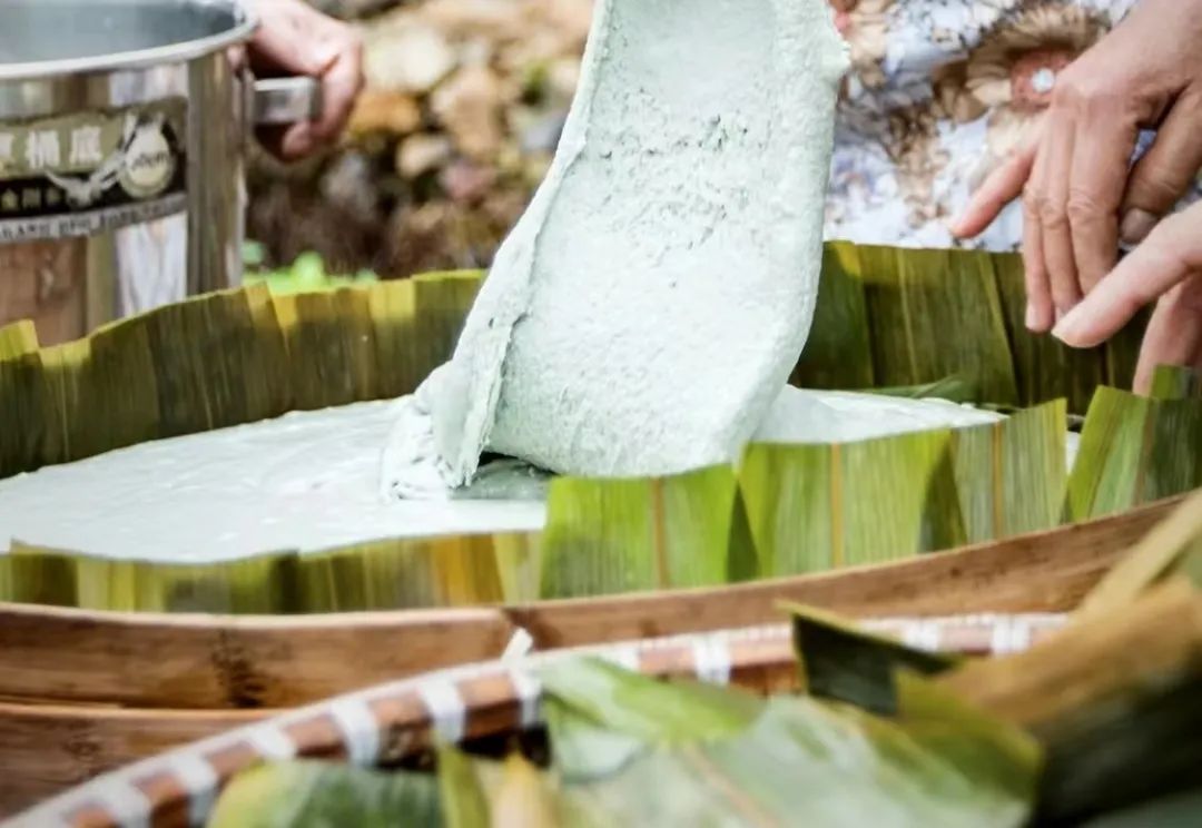 青糕是遂昌民间的传统名点,距今已有五百多年历史。加了艾草的青糕色泽翡翠如玉,清香扑鼻而来,煞是诱人。当即品尝,入口松软,软糯不粘牙,口感微甜,是让人流连忘返的遂昌纯正“年”味。