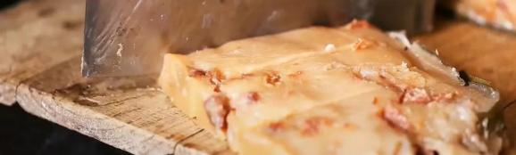 香软甜蜜的百果糕由糯米制作而成,加入金桔饼、核桃肉、蜜饯果脯以及红绿丝等辅料点缀。这口为遂昌人所爱的百果糕,看起来色彩艳丽丰富,吃起来糯香拉丝,香甜Q弹。