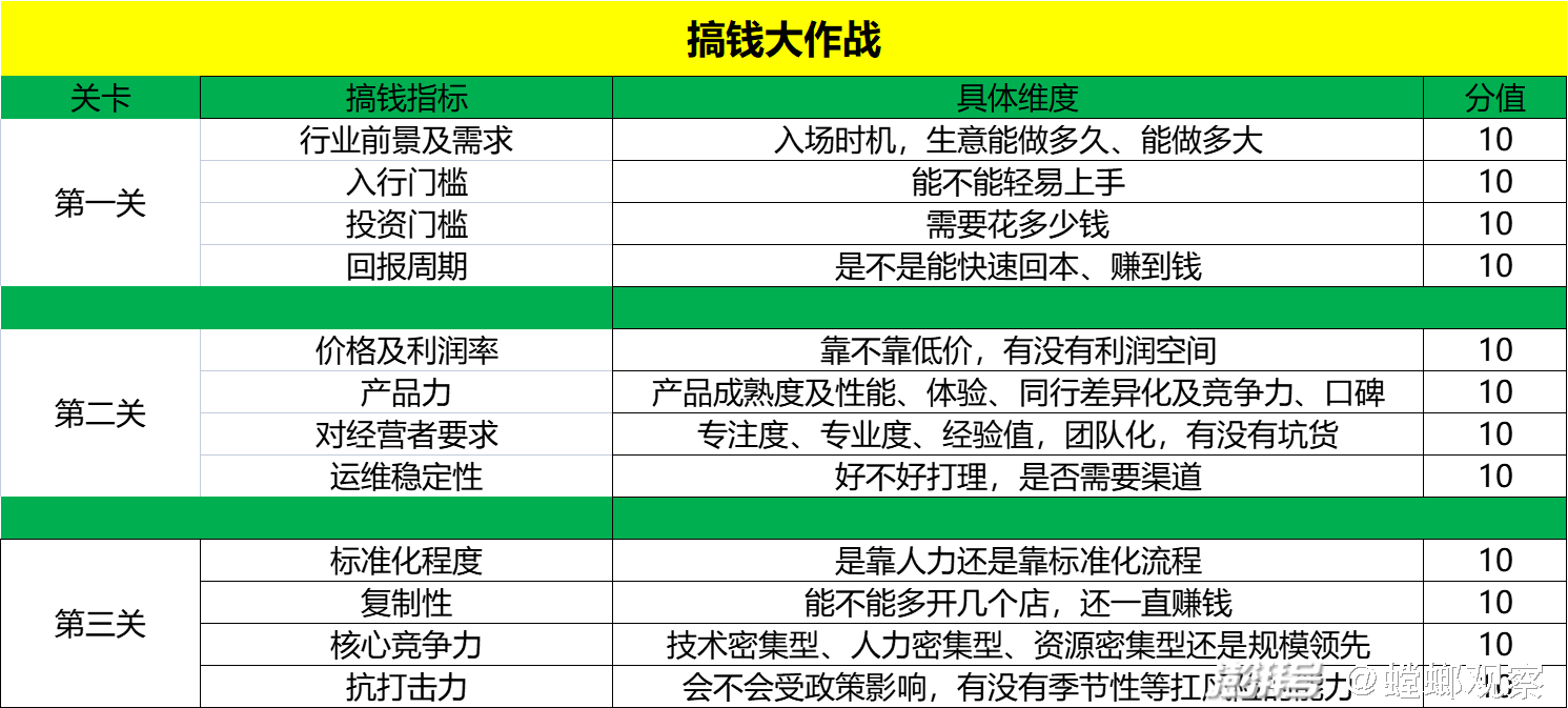 最后,老规矩,我们用搞钱不靠谱指标,尝试给小美的美容院项目打打分。