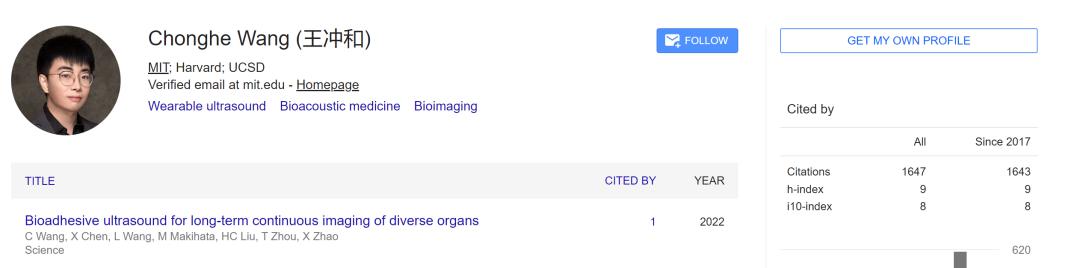 一作王冲和目前是麻省理工学院机械工程系的研究生研究员,开创了可监测人体深层组织生命体征的可穿戴超声技术的工程方向。他还曾被评为 “2019 Baxter Young Investigator”,以表彰他在开发世界上第一个可穿戴式中央血压监测器方面的贡献,该监测器有可能拯救ICU病人的生命。