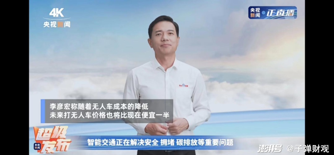 同时李彦宏还表示:“随着无人车成本的降低,未来打无人车价格也将比现在便宜一半。”