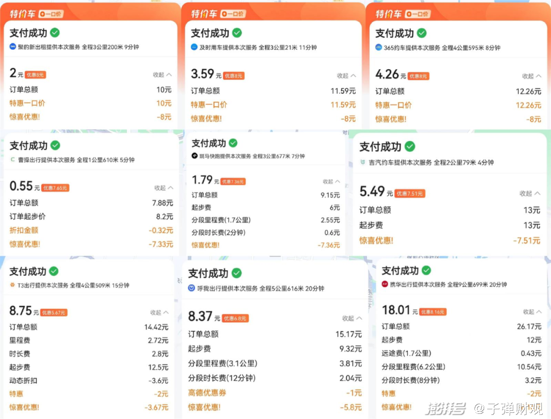 一位网约车用户告诉「子弹财观」:“在2021年的那个7月,我算是见证了2014年‘烧钱大战’时都没出现过打车折扣优惠,我还多次在高德打车上享受到了低至‘0元’的专车服务。”