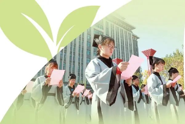 图为山西中医药大学学生在张仲景雕像前诵读《伤寒杂病论》。
