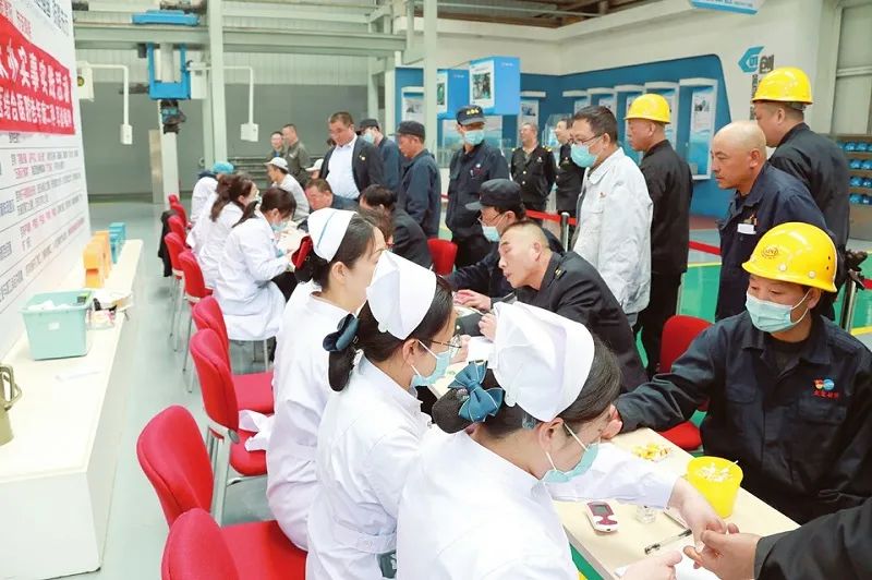 图为山西中医药大学附属医院的医护人员为群众把脉诊病。