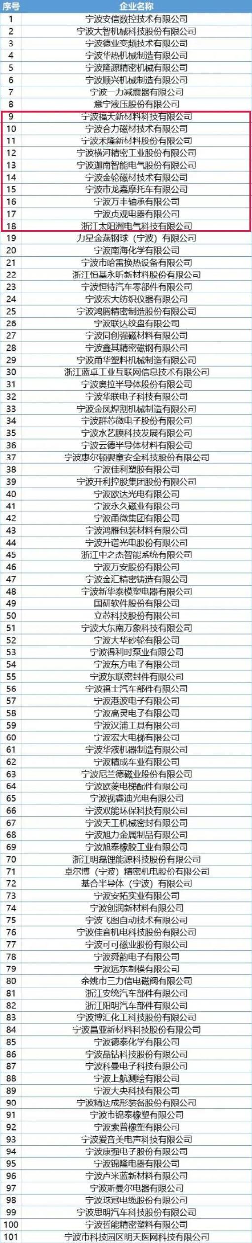 初步统计,101家企业中,关键基础件企业入选最多,占比接近30%,如果将汽车零部件、汽车模具和电子元器件也纳入关键基础件统计的话,那么占比将超过一半。新材料也是入选企业较多的行业,其中磁性材料企业过半。