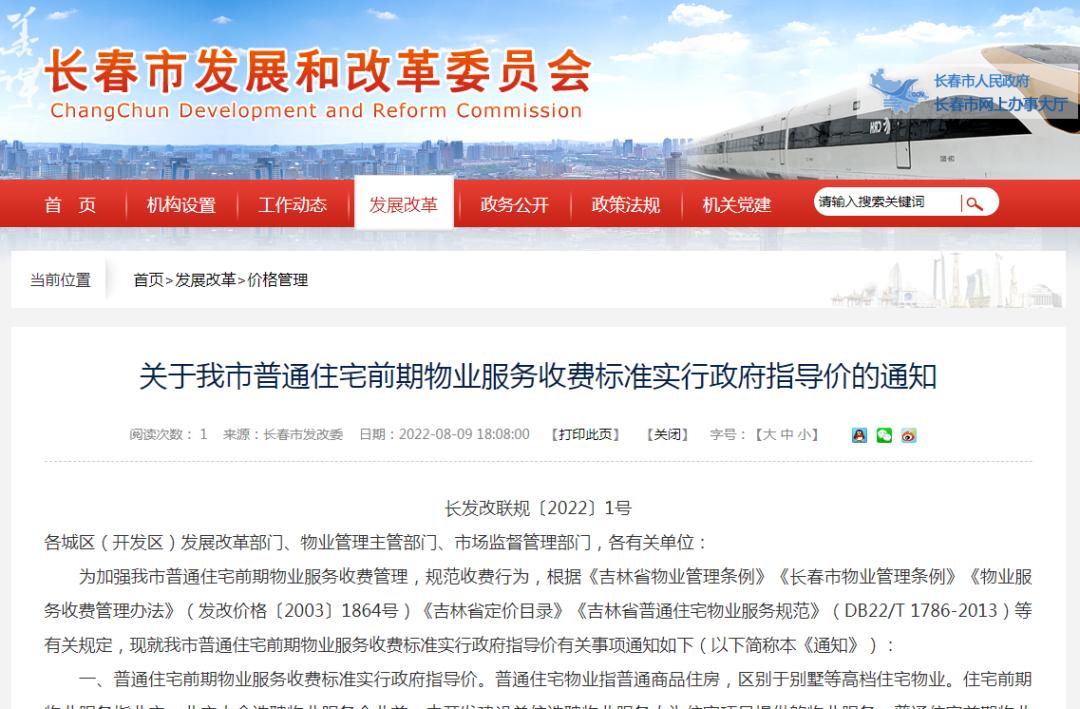 原文标题:关于我市普通住宅前期物业服务收费标准实行政府指导价的通知 | 政府指导价!长春市最新物业收费标准定了