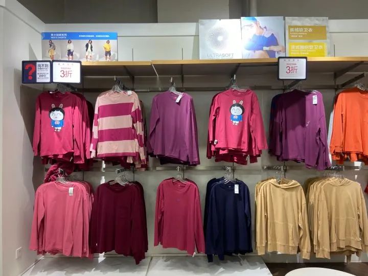 记者在店里转了圈,可能是接近清仓已经尾声了(从7月11日开始),成人区已经没有太多款式可以选择,还剩些长款卫衣和牛仔裤。其中部分是红色标签,有折上再5折。