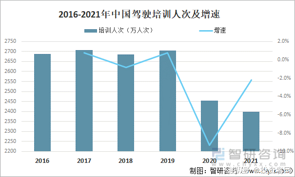 驾培参与人数的情况也在2018-2019年期间发生了较大的变化,从2019年的2700万人下降至2020年的约2450万人,2021年,这一数字进一步下降至约2400万人。