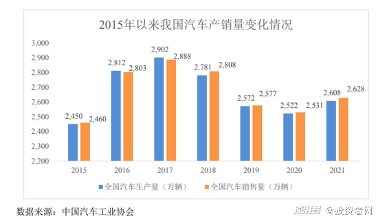 另一方面,根据中国汽车工业协会发布的数据,从2019年开始,我国汽车产业整车销售情况也面临着一定的压力。2019年-2021年期间,全国汽车销售量稳定在2500万辆-2650万辆之间,较2016年-2018年2800万辆以上的水平有较大的回落。