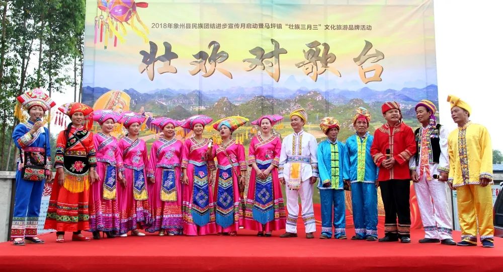 在每年壮族“三月三”节日期间,马坪镇都开展对歌、赛歌等活动,以歌会友,以歌传情,打造“三月三”壮欢艺术节。从2013年起至今,马坪镇已连续承办了八届全区壮欢山歌擂台赛,壮欢已然成为马坪响亮的文化品牌。