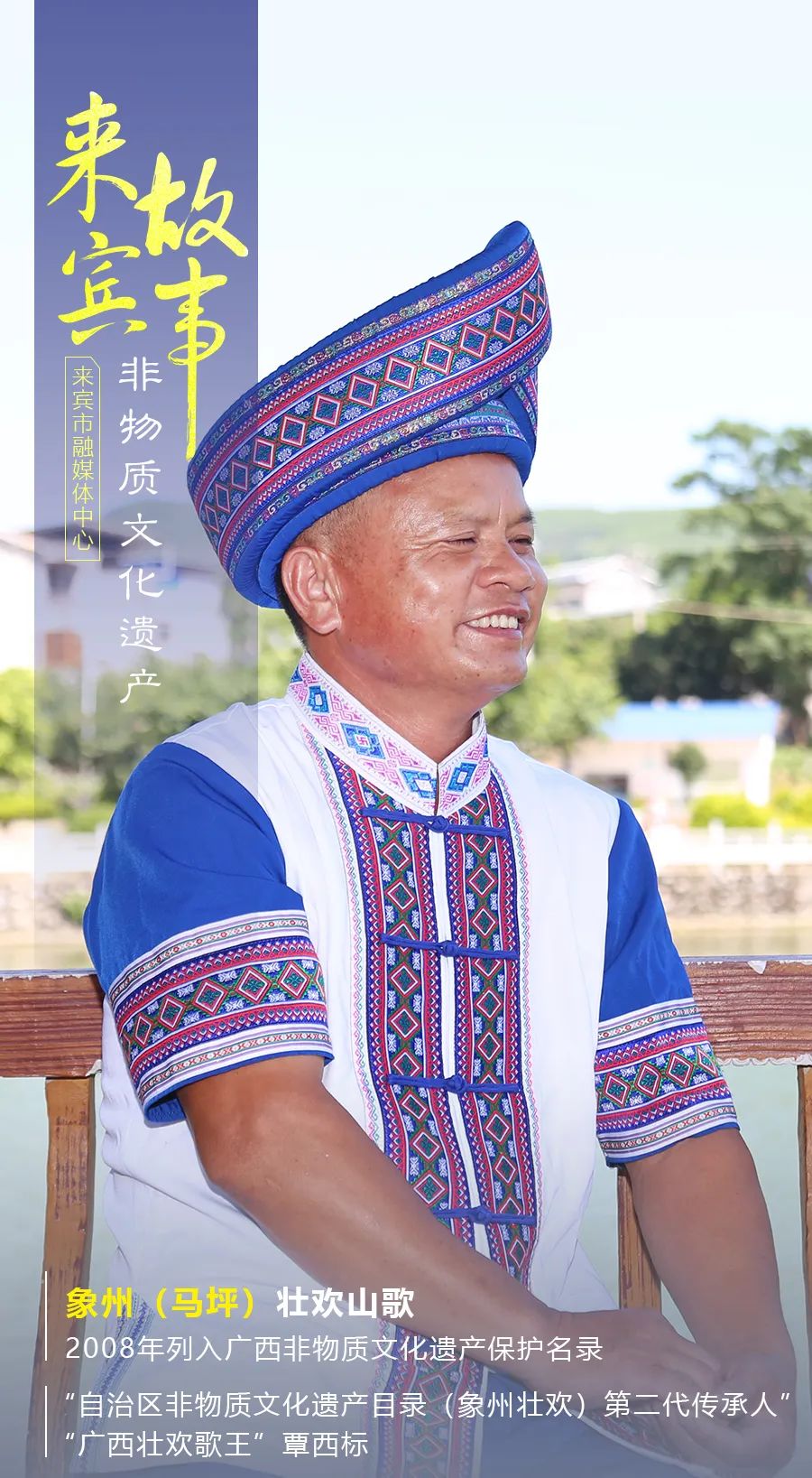 “我们马坪壮欢起源于唐朝。”自治区非物质文化遗产目录(象州壮欢)第二代传承人、“广西壮欢歌王”覃西标说,唐朝中期,马坪境内的壮族人民就开始唱欢,清末是马坪人民壮欢传唱的鼎盛时期,当时几乎村村有人唱欢,人人懂唱欢。其中最具代表性的就是马坪镇龙岩村,如今当地壮欢山歌还唱“象州马坪壮欢乡,马坪龙岩有欢王;世世代代都这样,四面八方美名扬”。“壮欢发展到如今,马坪镇孙孙代代,家家户户,男女老少都懂得唱壮欢”覃西标说罢唱起了壮欢。