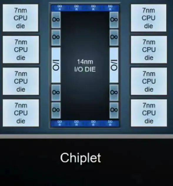 Chiplet就是将不同工艺节点的die(裸片)通过异构的方式混装,这样可以大大降低企业在先进工艺制程方面的成本。比如一块芯片可以做到CPU用7nm工艺,I/0则用14nm工艺,这样与完全由7nm打造的芯片相比,成本大约降低50%。