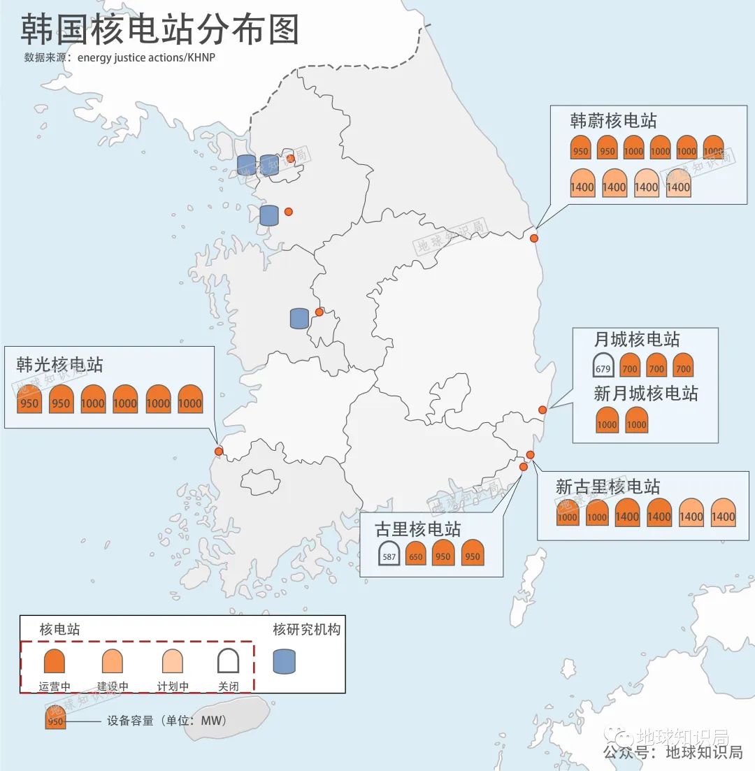 正在运行的24座核电站,对韩国形成“包围之势”▼